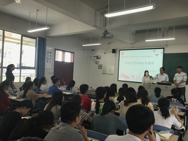 为教育引导在校大学生树立到基层建功立业的就业意识和崇高理想,文教学院于5月22日中午12:30在慎思楼中303举行第九期党校专题党课暨优秀校友成长在基层事迹报告会。校党委宣传部副部长陈小波、文教学院辅导员曾鹏及入党积极分子、预备党员、各班级学生代表等参加了报告会,报告会由文教学院副书记王倩主持。