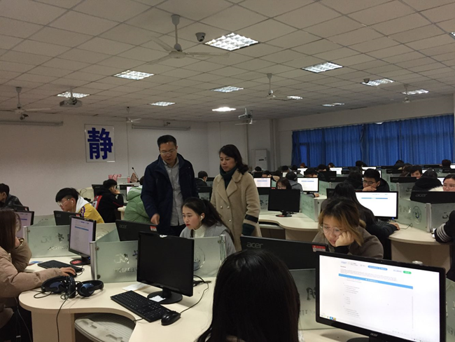 在校院两级领导的关心下,在学校各部门通力协助下,在全体教学一线老师的共同努力下,此次考试得以圆满举行。考试期间,校领导徐柳凡、朱定秀等先后亲临考试现场,教务处丁俊苗处长、信息化建设与管理处吕家云处长等也到现场指导。大学英语无纸化考试充分考虑了英语学科的特点,发挥了无纸化考试高效,省时节约的特点,同时相对于传统随堂考查而言,考试信度也得到了大幅提高。作为大学英语教学深度改革的重要一环,考查方式的改革对规范学生考试行为和促进学生学习主动性起到了很好的促进作用。