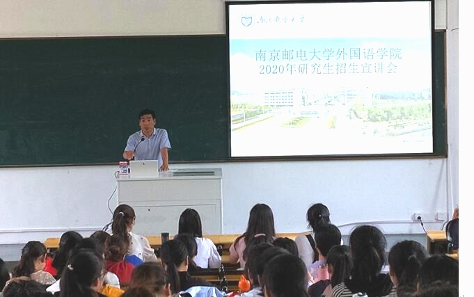 6月10日下午,外国语学院在明德楼院东二教室举办了南京邮电大学研究生招生宣讲会,宣讲会由南京邮电大学海外教育学院副院长方子纯教授主讲,外国语学院院长柯应根主持,我院2016级学生共100余人聆听了此次宣讲会。