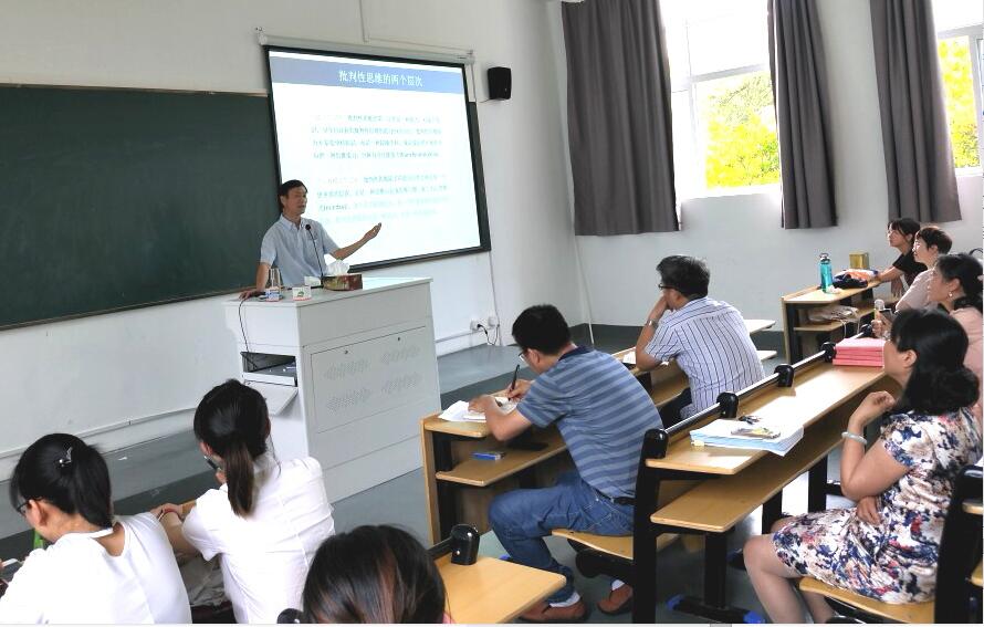 应科技处和外国语学院邀请,6月12日下午2点半,安庆师范大学外国语学院院长、硕士生导师、外国语学院客座教授王先荣在明德楼东二大教室作了一场题为“外语专业的创新思维培养与学术创新”的学术讲座。报告由外国语学院院长柯应根教授主持,学院相关教师和各年级学生聆听了本次讲座。