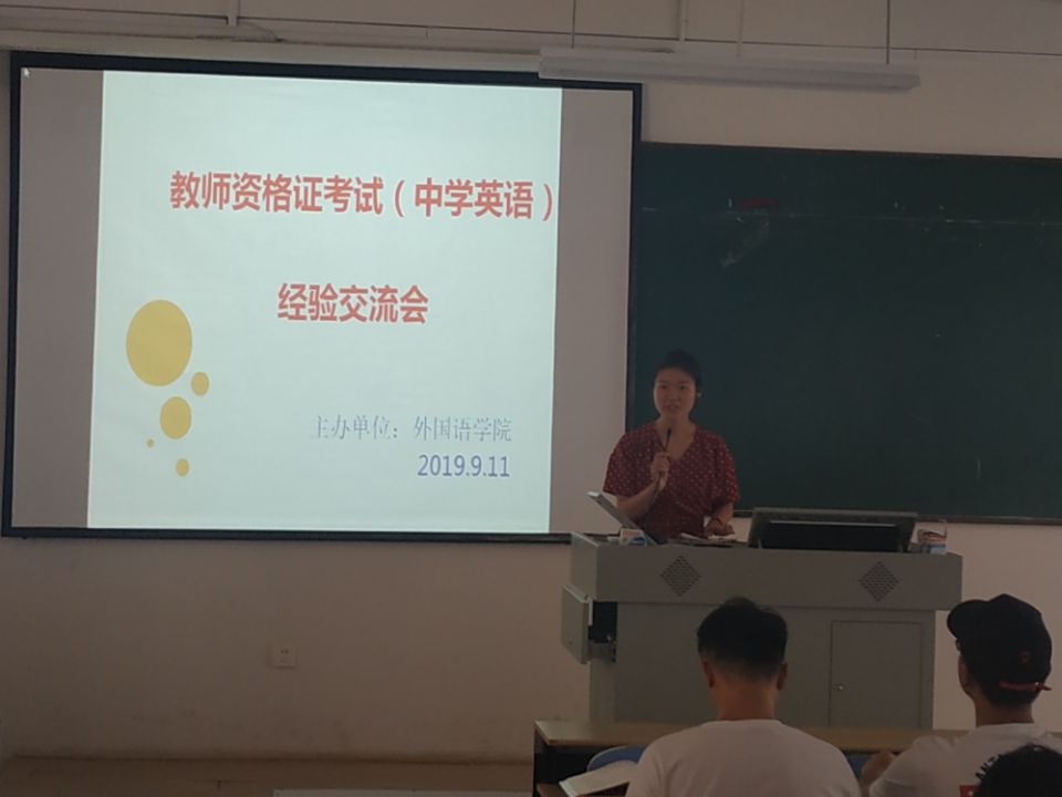 为了加强同学们对教师资格证考试的了解,提高教师资格证考试的通过率,加强考前交流,9月11日下午2点半,外国语学院在慎思楼中202举办了2019年下半年教师资格证考试经验交流会。本次经验交流会邀请了16级英语专业孙宇虹、王冉冉,16级商务英语专业匡鑫悦、王佳丽四位同学分享考试经验。17级英语、商务英语专业部分备考教师资格证考试的同学参加了交流会。交流会由专业英语教研室主任周华主持。