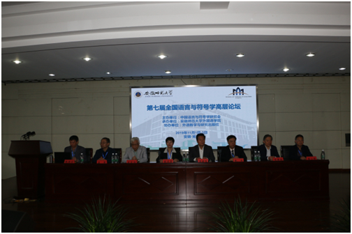 正式论坛阶段,与会的8位语言与符号学研究专家按顺序分两个上午,分别从各自的细分研究领域做了大会的主题发言,他们发言的主题分别是:论文学艺术中的“准不可能世界”(四川大学赵毅衡教授)、后现代体验人本视域下的符号体认观(天津外国语大学王铭玉教授)、关于精神符号学的几点构想(南京师范大学张杰教授)、A Corpus-assisted Multisemiotic Approach to Semiosis in Multimodal Discourse(安徽师范大学罗健教授)、多模态话语建构中的符号系统、符号选择与符号的供用特征(同济大学张德禄教授)、基于指示性为第一性的汉英意义理解对比分析(苏州大学王军教授)、符号学再思考(四川大学唐小林教授)、社会符号学与社会语言学:联系与区别(天津外国语大学田海龙教授)。