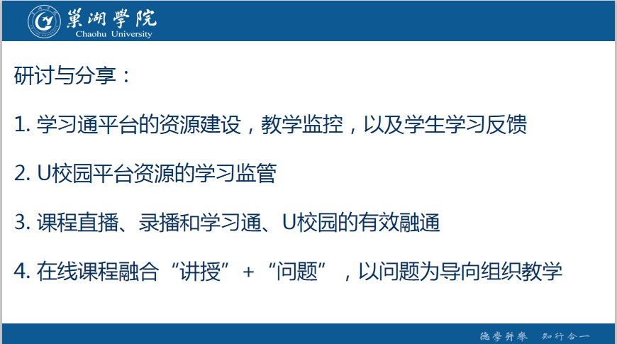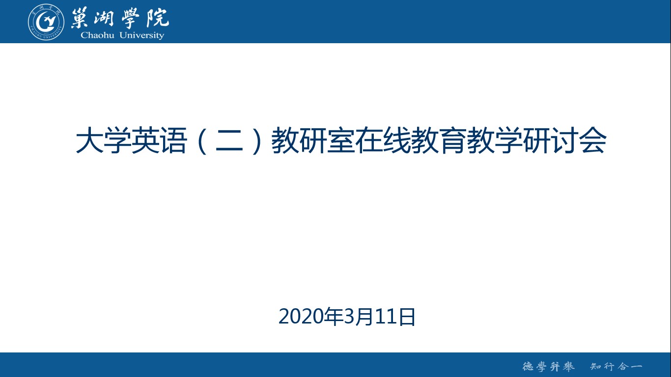 3月11日下午14点30分,按照学院关于疫情防控期间在线教育教学的统一部署,大学英语(二)教研室以“扎实开展在线教学,提升线上教学质量”为主题,召开了疫情防控期间线上教学交流会。