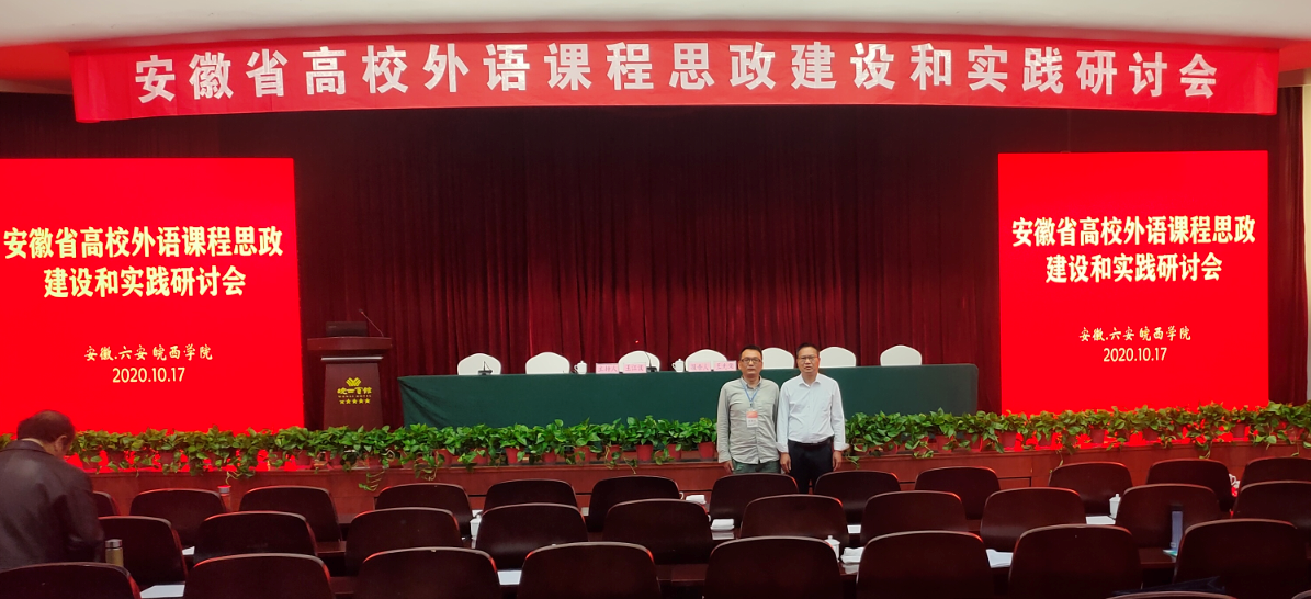 为落实《高等学校课程思政建设指导纲要》精神,进一步推动我校外语类课程思政建设,将立德树人落实在课堂教学,使外语教育和思政课程同向同行,形成协同效应,构建全员全程全方位育人大格局,外国语学院院长柯应根、教科研秘书李明于10月16-18日赴皖西学院参加“安徽省高校外语类课程思政建设和实践研讨会”。
