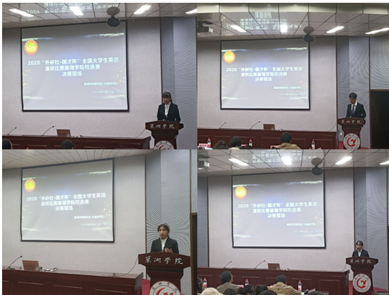 比赛伊始,外国语学院院长柯应根致开场辞,对评委教师、指导教师、参赛选手及观赛同学的到来表示欢迎;也对在场学生提出殷切期望,希望大家真正学好英语、热爱英语演讲,真正做到以赛促学。随后,十位选手依次登台按照比赛流程,围绕主题进行五分钟定题演讲及一分钟即兴问答。选手的演讲既有对中华五千年文明的自豪,也有疫情期间对祖国的感动。选手慷慨激昂地迸发出的每一句掷地有声的言语,既表达了当代青年学子对祖国深深的爱,也展现了选手们优秀的口才。这是讲好中国故事的生动写照,这是我校英语教学水平的生动体现!
