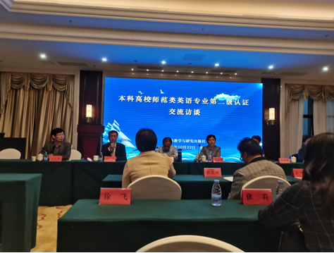 第二阶段是参会代表就认证工作与在场各位专家进行的交流。各位教师围绕桥梁课程、课程思政、教学案例库、课程教学等问题进行了热烈的讨论。我院教师就人才培养方案矩阵指标点设置、课程体系、毕业论文等问题与在场专家进行了沟通,进一步明确了英语专业师范类办学的方向,也认识到,英语专业人才培养应更具有地方特色、学校特色,在此基础上有效保障在未来几年中顺利完成认证工作。
