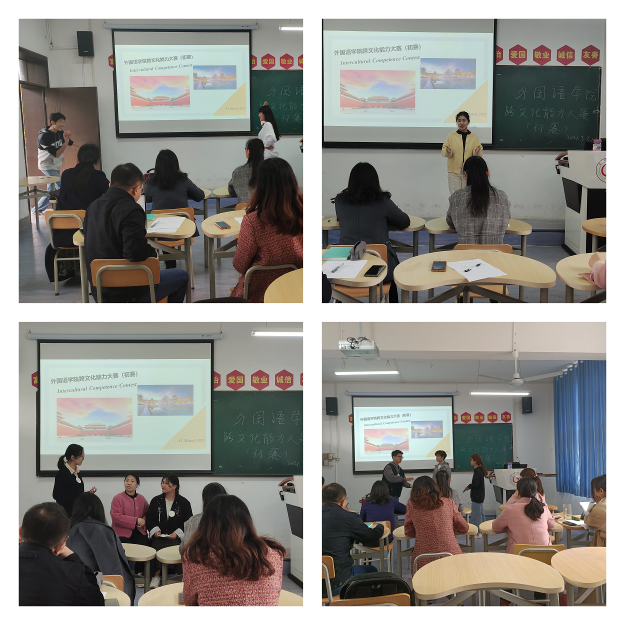伴着初春脚步的到来,柳树舒展开了黄绿柔嫩的枝条,花儿亦悄然地静美绽放,在充满着勃勃朝气的校园内,同学们满怀热情与期盼。为培养学生们的跨文化交际意识和能力,选拔出具有一定跨文化交际水平,能够进行有效、得体的跨文化交流的学生,经过后期的指导和培训,打造一组具有较高水准的跨文化交际能力大赛队伍,外国语学院于3月31日在明德楼305和306教室举办了跨文化能力大赛校内选拔赛。