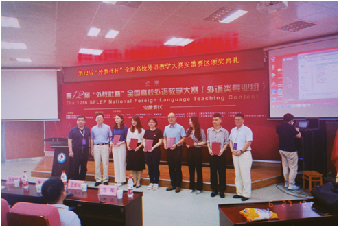 6月25日至6月27日,第十二届“外教社杯”全国高校外语教学大赛安徽赛区复赛及决赛在安徽财经大学举行。外国语学院英语(师范)专业张丹团队和商务英语专业徐超团队代表awc777万象城娱乐官网参加了本次比赛。全省共有安徽大学、安徽师范大学等近30所本科高校代表队进入此次大赛,经过复赛和决赛的激烈角逐,外国语学院两组教师团队通过优秀的授课以及临场设计的优质说课,得到评委们的一致认可,分别获得本次教学大赛英语专业组一等奖和商务英语专业组一等奖。