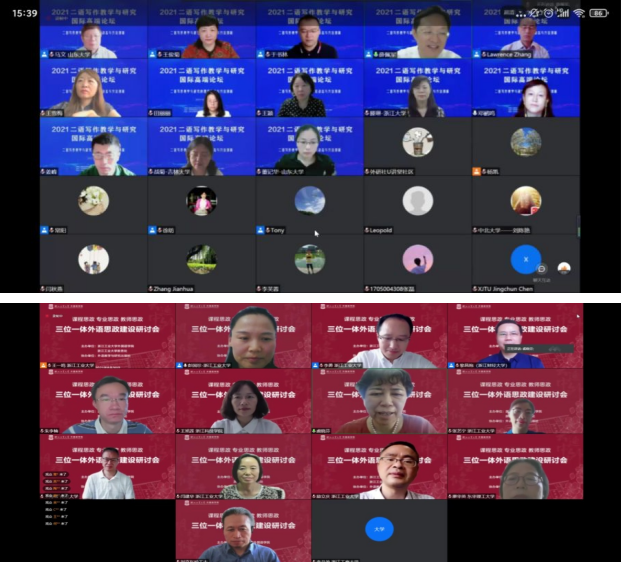 自暑假开始,师范英语教研室先后组织教师参加了7月18日-19日第五届全国应用型本科院校英语类专业教学改革与发展论坛、8月5日外研社2021年全国高等学校大学英语教学发展与创新研修班、8月4日-5日外教社2021年暑期全国高校外语教育发展论坛“跨文化外语教学与国际化人才培养”、8月6日-7日“高校外语课程思政建设理论与实践”、8月11日师范专业认证培训、8月12日2021年二语写作与研究国际高端论坛,8月14日疫情常态化下教师教学能力提升与教学管理新模式研讨会、8月16日-17日首届中英联合翻译学研讨会、8月20日首届华五论坛、8月23日-24日第五届全国英语专业及大学英语课堂教学高端论坛、8月25日“双万计划”一流课程申报线上培训会、8月27日首届全国高校教师教学创新大赛成果巡讲(第一期)和8月30日课程思政、专业思政、教师思政三位一体外语思政建设研讨会等线上线下研修。