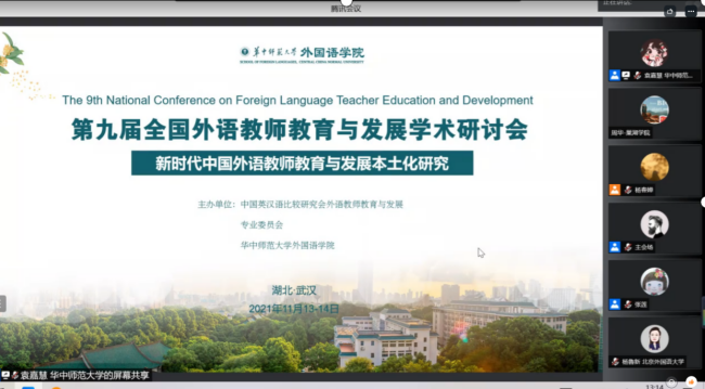 本次研讨会受到疫情影响,会议组委会将原定的线下形式变更为线上形式,主会场设在华中师范大学外国语学院。本次研讨会由中国英汉语比较研究会外语教师教育与发展委员会主办,华中师范大学外国语学院承办,来自国内外近300位外语教师教育专家、学者及研究生围绕 “后疫情教学模式与教师教育与发展”、“教师认知与情感”、“教师能动性与创新”、“教师课堂话语研究”、“外语教师信息化素养”、“教师专业发展支持体系外语教师发展与学生发展”、“课程思政和新文科建设与教师发展”、“国家语言政策与教师教育规划”等8个分议题展开研讨。
