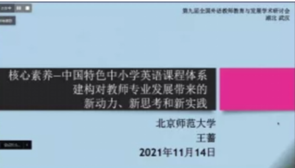 14日下午,利兹大学Maggie Kubanyiova教授主旨发言“Language Teacher Motivation as the Desire to Make a Difference: Lessons for Teacher Education in the Post-pandemic World”,聚焦后疫情时代语言教师教育,特别关注应该如何理解语言教师动机,以及语言教师动机对教师教育实践的意义。王蔷教授的主旨发言“核心素养—中国特色中小学英语课程体系建构对教师专业发展带来的新动力、新思考和新实践”指出,伴随核心素养、立德树人和学科育人理念的提出,基础教育课程改革从综合语言运用能力迈入了核心素养时代,中小学英语教师专业学习也随之迈上了新台阶,报告梳理了近年来基础教育课程改革的重要理念和实践经验,探讨英语学科核心素养、语篇研读、英语学习活动观、大观念、以及深度学习等概念给深化课程改革、推动中小学英语教师专业发展带来的新变化。