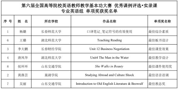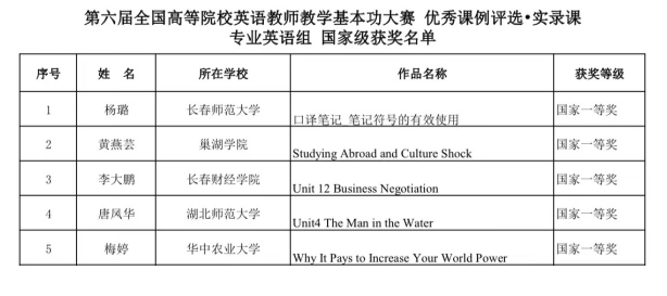 近日,由高等学校大学外语教学研究会和全国高等师范院校外语教学与研究协作组联合举办的第六届全国高等院校英语教师教学基本功大赛圆满落幕。外国语学院教师黄燕芸从激烈的竞争中脱颖而出,最终斩获2021年度优秀课例评比之实录课(专业英语组)国家级一等奖,并同时获得“最佳语音语调”。