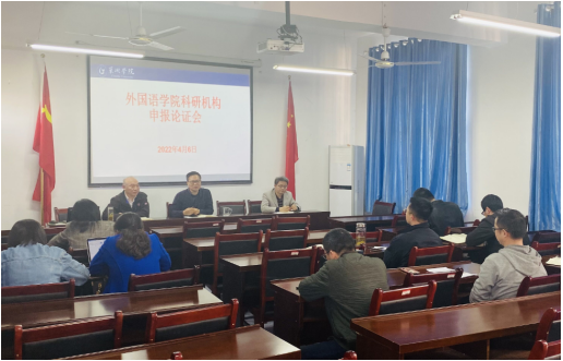 为进一步夯实科研基础,筑牢学术根基,4月6日下午,外国语学院在明德楼四楼会议召开科研机构申报论证会。学院领导班子、教研室主任、四位科研机构申报负责人等参会,会议由院长柯应根主持。