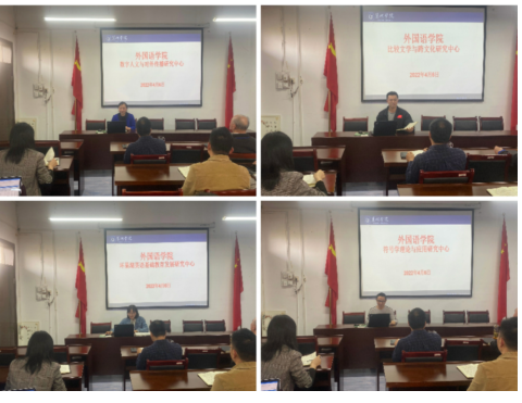 随后,与会人员就四个研究中心申报论证工作发表了意见和建议。副院长余荣琦在肯定科研机构申报工作取得新突破的同时,针对申报论证中的研究重点和研究方向提出了宝贵的建议。党委书记单自华认为申报成立研究中心是外国语学院历史发展中的一件大事。希望四个研究中心能以“滚雪球”的模式拓展研究成果,期待研究中心在各负责人的带领下尽快“发声”。