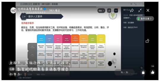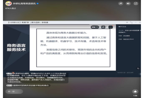 4月18日晚7点,商务英语专业全体教师参加了由外语教学与研究出版社主办的“数智时代的商务英语教学理念和重点”线上讲座,本次讲座邀请北京语言大学外国语学部教授、国际语言服务研究院院长王立非担任主讲。