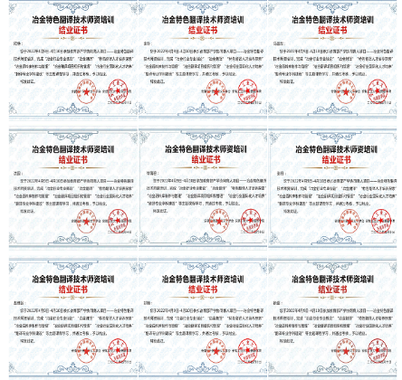 为进一步落实教育部产学合作协同育人项目,推动冶金特色翻译教学、研究与实践,促进高校冶金特色翻译技术师资队伍建设,提高冶金特色翻译技术教学质量和科研能力,培养适应新时代国际传播需要的“语言+技术”融合型翻译人才,安徽工业大学外国语学院联合上海一者信息科技有限公司与安徽译创语言服务有限公司于2022年4月9日至10日开展冶金特色翻译技术师资培训,共有来自11所院校的师生参加了培训。外国语学院共派出九名教师参加此次培训,课程学习完成后全部通过考核。