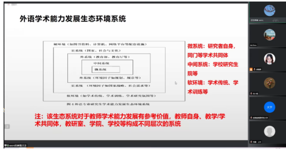 4月27日下午,师范英语教研室全体教师收看由中国传媒大学研究生学术论文写作工作坊主办的线上讲座,本次讲座邀请上海外国语大学的王雪梅教授担任主讲,由中国传媒大学赵硕教授主持。