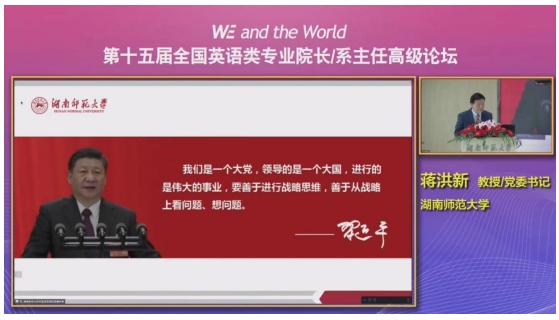 14日上午,上海外国语大学校长李岩松、湖南师范大学党委书记蒋洪新、教育部高等学校外国语言文学类专业教学指导委员会主任委员兼北京外国语大学副校长孙有中、上海外国语出版社社长孙玉等人先后发表致辞,并预祝本次论坛取得圆满成功。