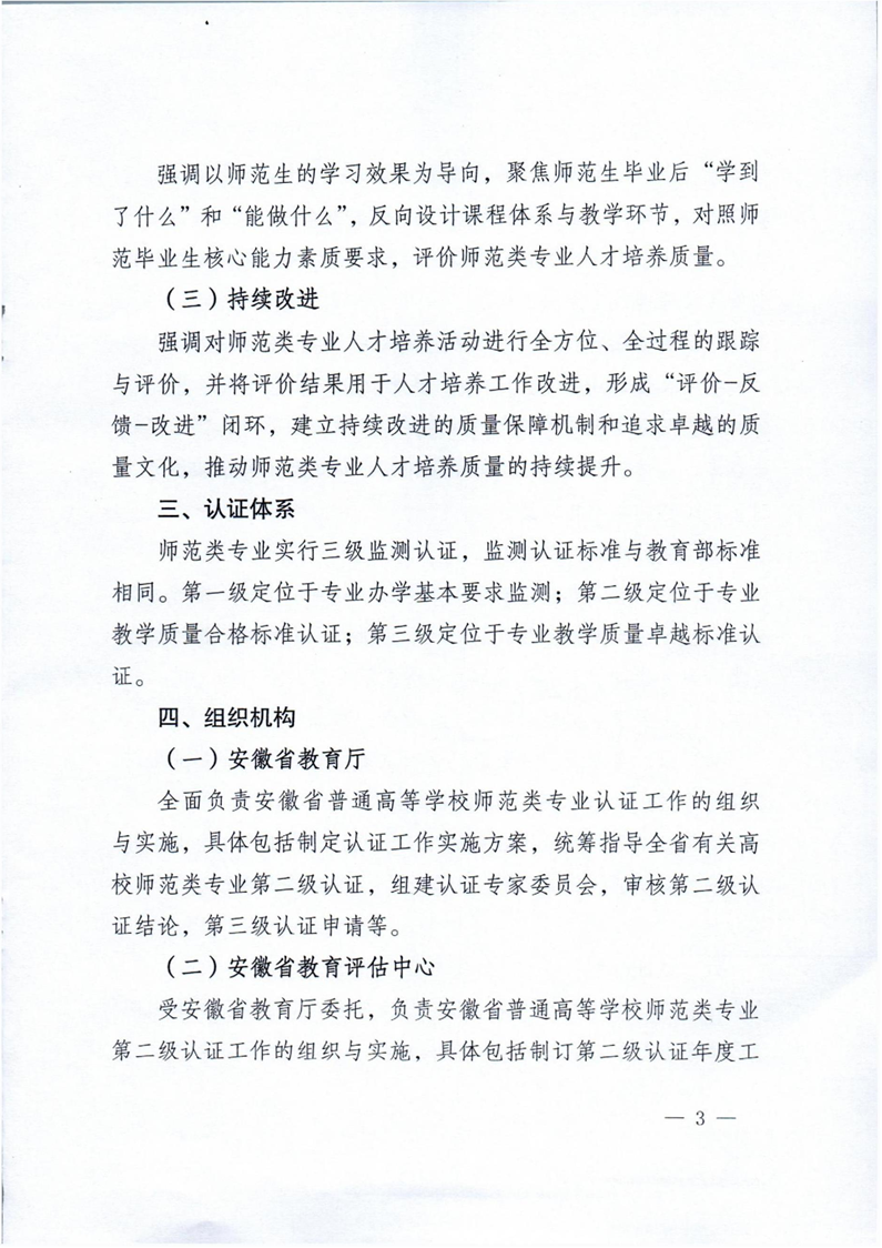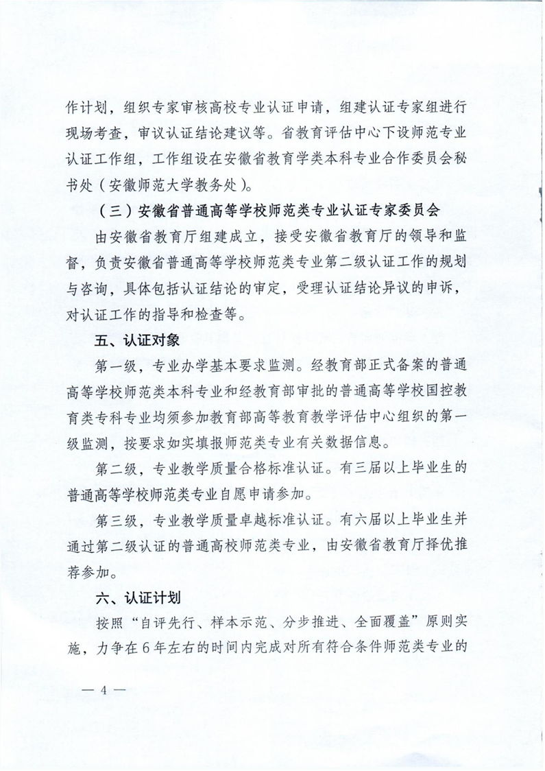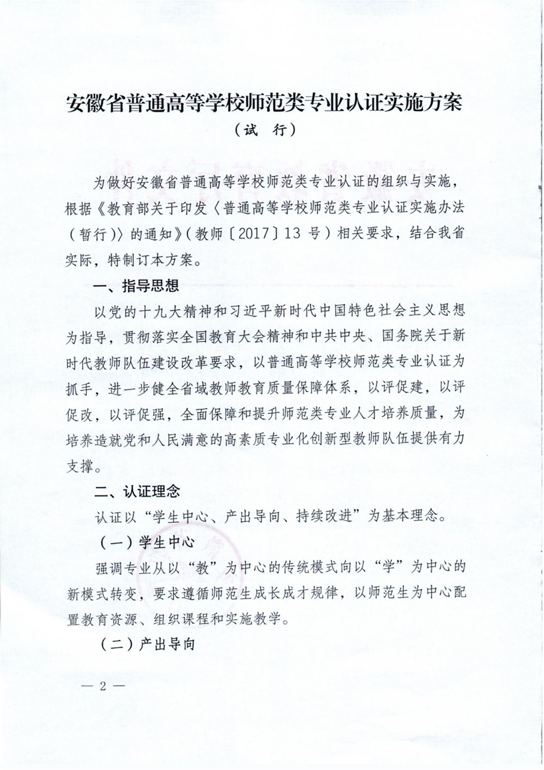 为推进我校师范类专业认证工作,规范引导师范类专业建设,建立健全教师教育质量保障体系,充分保障并不断提高师范生培养质量,根据《教育部关于印发普通高等学校师范类专业认证实施办法(暂行)的通知》(教师〔2017〕13号)和《安徽省教育厅关于印发普通高等学校师范类专业认证实施方案(试行)的通知》(皖教办〔2019〕4号)及有关师范类专业认证会议精神,结合我校实际情况,特制定本方案。
