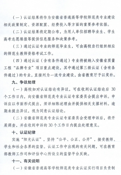 (三)到2024年,力争所有师范类专业通过二级(合格标准)认证。