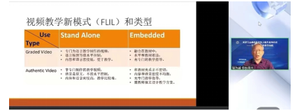 第一位主讲专家为华东师范大学博士生导师邹为诚教授。邹为诚以综合英语视频教学理论和实践策略为题,从现代外语教学新发展FLIL (Film Language Integrated Learning)理论出发,阐述了新的视频教学原则和实践方法。