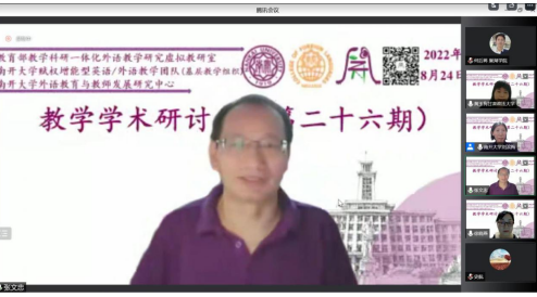 为了进一步提高教师的教学科研能力,教育部教学科研一体化外语教学虚拟教研室于2022年8月24日晚举办了第26期教学学术研讨会。外国语学院组织教师全程参加了此次云端学术研讨会。