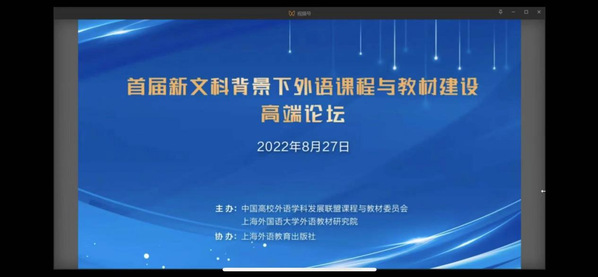 8月27日,师范教研室组织全体教师线上参加“首届新文科背景下外语课程与教材建设高端论坛”,该论坛由中国高校外语学科发展联盟课程与教材委员会、上海外国语大学外语教材研究院主办,上海外语教育出版社协办。