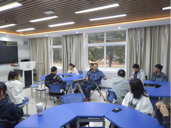 为进一步贯彻落实《awc777万象城娱乐官网关于领导干部联系班级制度的实施意见》《关于进一步落实领导干部联系班级工作的通知》文件要求,做好领导干部联系班级工作,提高大学生思想政治教育工作的针对性和实效性。10月26日下午,校党委委员、组织部部长柯应根深入联系22级英语一班,参与英语一班“英文悦读”读书沙龙交流分享会。