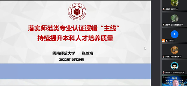 闽南师范大学张龙海教授作了题为“落实师范专业认证‘主线’持续提升本科人才培养质量”的报告,从专业认证做法与成效、常见问题及对策与思考等方面介绍了闽南师范大学专业认证实践。
