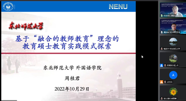 东北师范大学周桂君教授作了题为“基于‘融合的教师教育’理念的教育硕士教育实践模式探索”的报告,以东北师范大学教育硕士实践基地为例,在分析教育实践改革背景基础上,以问题驱动为导向,从多维角度介绍了教育实践模式的内涵、特点及成效。