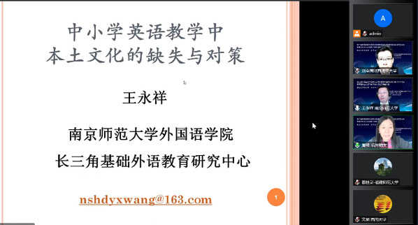 南京师范大学外国语学院王永祥教授作了题为“中小学英语教学中本土文化的缺失与对策”的报告,分析了当下中小学英语教学中的本土文化缺失现状及原因,提出应着重从教材、教师、学生和测试四个方面强调英语教育中的本土文化因素。