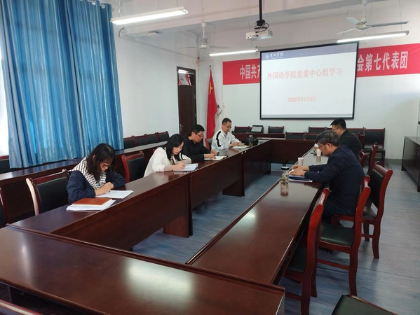 11月2日下午,外国语学院在明德楼404会议室召开党委理论学习中心组会议,学习贯彻党的二十大精神。全体党委委员参加会议,会议由外国语学院党委副书记、院长余荣琦主持。