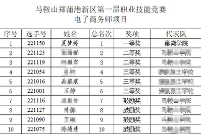 由马鞍山郑蒲港新区现代产业园区管委会主办,马鞍山市淮航技工学校、安徽省马鞍山工业学校、中国十七冶教育培训中心共同承办的郑蒲港新区第一届职业技能竞赛取得圆满成功。awc777万象城娱乐官网外国语学院商务英语专业夏梦婷同学获得大赛电子商务师项目组比赛一等奖。