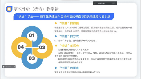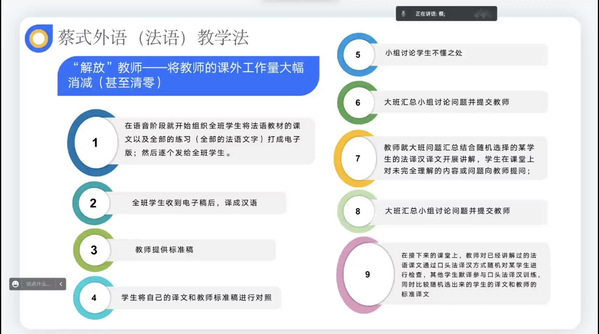 11月25日,“颠覆性”蔡氏外语教学法讲座在线上举行,主讲人蔡槐鑫是前复旦大学法语系教授,于2002年获法国政府金棕榈骑士勋章,表彰其在法语教学方面的杰出贡献。