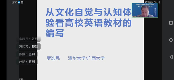 清华大学教授、中国英汉语比较研究会会长罗选民做了主题为《从文化自觉与认知体验看高校英语教材的编写》的主旨报告。罗选民阐述了对高校英文教材编写的认识,指出外语教材的编写一定要适合新时代,新使命以及新挑战。同时,对文化自觉和英文教材编写以及认知体验与英文教材编写进行了详细的阐释。最后,罗选民指出外语教材的思政融入要做到春风化雨。北京外国语大学高级翻译学院院长任文作了“《习近平总书记教育重要论述讲义》(英文版)翻译与教学”的主旨报告。任文教授表示时政文献外译要以忠实为要的原则,兼顾意义对等和形式对等,并融通中外。最后,Nigel Harwood教授作了“New Trends in the field of Materials Development”的主旨报告,教材编写的发展新趋势进行了论述。