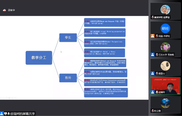 25日19点,《理解当代中国:英语读写教程》研讨活动由江苏大学英语系副主任毛艳枫教授和《英语读写教程》编者、北京外国语大学徐瑞珂副教授主讲。