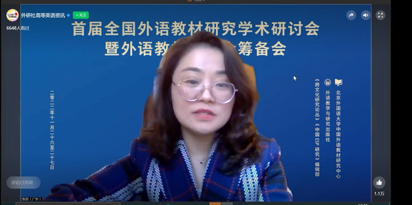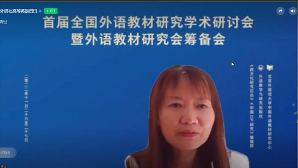 2022年11月26日,大学英语(二)教研室全体教师在线观看了北京外国语大学中国外语教材研究中心主办,外语教学与研究出版社承办,《跨文化研究论丛》和《中国ESP研究》编辑部协办的首届全国外语教材研究学术研讨会。