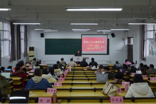11月30日下午,校党委委员、副院长丁俊苗到外国语学院宣讲党的二十大精神。宣讲会由外国语学院党委书记张蕊主持,学院全体教职工参加。