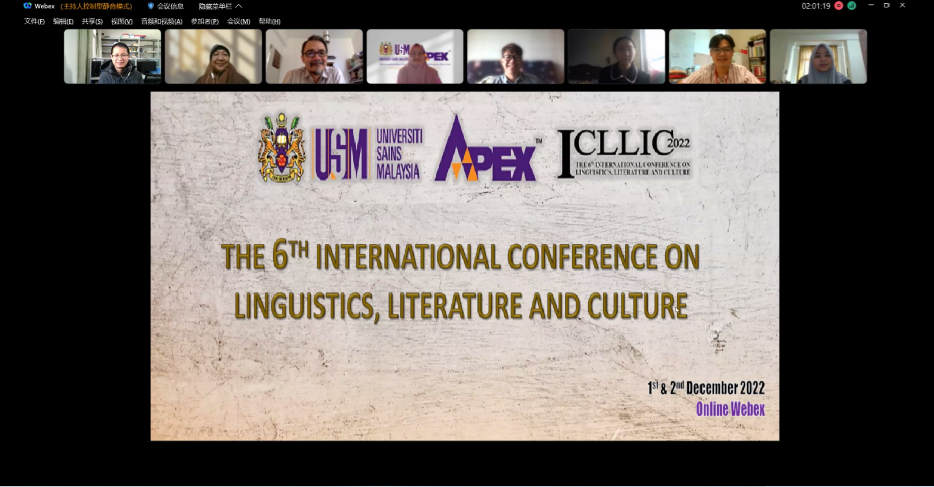 12月1-2日,第六届语言学、文学与文化国际会议在线上召开。本次会议由马来西亚理科大学英语语言研究中心主办,外国语学院教师李吟参加会议。