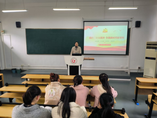 为掀起学习贯彻党的二十大精神热潮,提高学生的政治觉悟与思想素质,进一步引导学生端正入党动机,12月9日下午,外国语学院党委书记张蕊走进19级英语1班召开学习贯彻党的二十大精神主题宣讲会,会议在明德楼东二教室召开,由辅导员王凯主持。