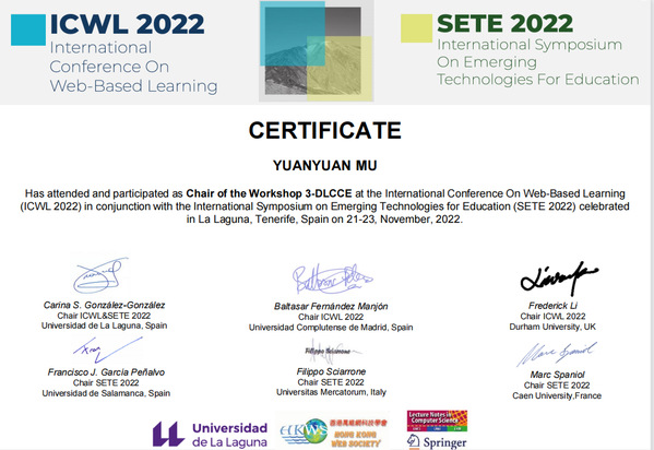 11月21日成功举办国际论坛International Workshop on Digitalization in Language and Cross-Cultural Education(DLCCE 2022),该国际论坛采用线上线下相结合的形式,在云端线上会场和西班牙University of La Laguna线下会场同时举办,吸引了来自欧洲多个国家的学者在线下会场观看该论坛的云端汇报。本次论坛是University of La Laguna和 Hong Kong Web Society联合举办的国际会议International Symposium on Emerging Technologies for Education (SETE 2022)中四个主要论坛之一。