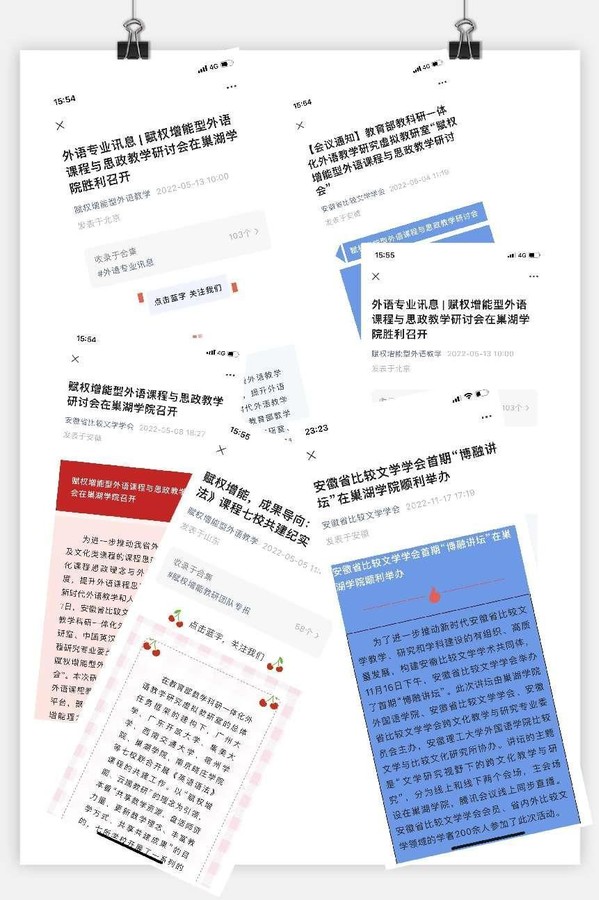 5月,安徽省比较文学学会官方微信公众号专题报道我院主办的教育部教科研一体化教学研究虚拟教研室首期“赋权增能型外语课程与思政教学研讨会”;