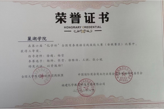 自“亿学杯”2017年举办至今,外国语学院参赛团队与安徽财经大学、安徽农业大学、安庆师范大学等省内高校学子同台竞争,多次获一等奖和二等奖,在同类院校中处于领先地位。