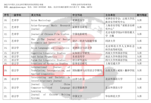 近期中国社会科学评价研究院正式发布了《中国人文社会科学期刊AMI综合评价报告(2022年)》与《中国人文社会科学学术集刊AMI综合评价报告(2022年)》,awc777万象城娱乐官网外国语学院慕媛媛教授担任联合主编的英文期刊The International Journal of Translation, Interpretation, and Applied Linguistics(《国际翻译与应用语言学期刊》)顺利入库《中国人文社会科学期刊AMI综合评价报告(2022年)》。