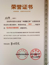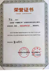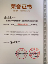 4月2日,首届“中语智汇杯”全国高校商务谈判大赛总决赛在四川外国语大学落下帷幕,外国语学院商务英语专业奚伟、杨雪两位教师指导的“浅取一等”团队荣获全国季军,范明倩和罗浩获得最佳谈判代表称号。