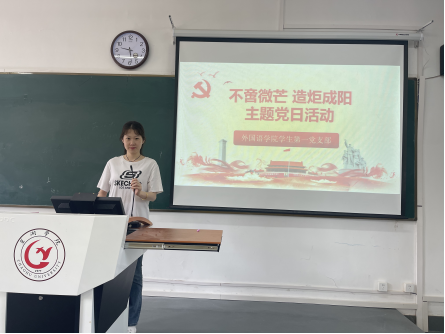 为深入营造以党建引领促学风,榜样示范共成长的良好氛围,5月9日下午,外国语学院学生第一党支部在明德楼西二教室开展“不啻微芒,造炬成阳”主题党日活动。此次活动邀请四名考研、考公上岸党员分享备考经验,学生第一党支部全体成员、20级商务英语专业全体学生参加。