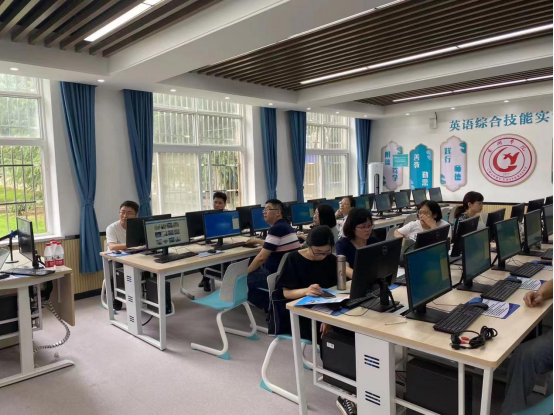此次培训采取理论与实操相结合的方式进行。培训中,培训师主要围绕“英语专业四八级考试系统”“英语写作训练系统”“英语演讲实践教学平台”的账号分配、功能介绍、教学互动操作以及数据报告分析等内容进行详细讲解和指导,在场教师积极参与实操体验。双方就英语综合技能实训项目设置及应用进行了座谈交流,并对操作中存在的问题进行了解答和交流。培训结束后,根据学校实验室建设相关规定,对照中标文件,对实验室的基础设施及软硬件进行了检查和初步验收。