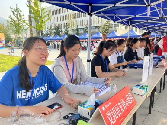 为了确保迎新工作顺利开展,学院提前部署、精心安排、在校门口、报到帐篷及新生宿舍楼设立三个志愿服务点,为新生报到做好充分准备。9月6日上午,全体迎新工作人员7点准时抵达学校指定迎新点,开始进行摊位布置、物资搬运、氛围营造等工作。学院迎新点设有新生扫码处、易拉宝宣传页、注意事项、安全须知和专属心愿卡等,助力同学们更快熟悉报到流程和融入校园生活。
