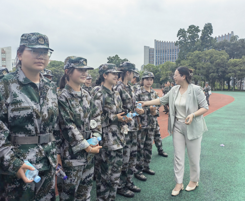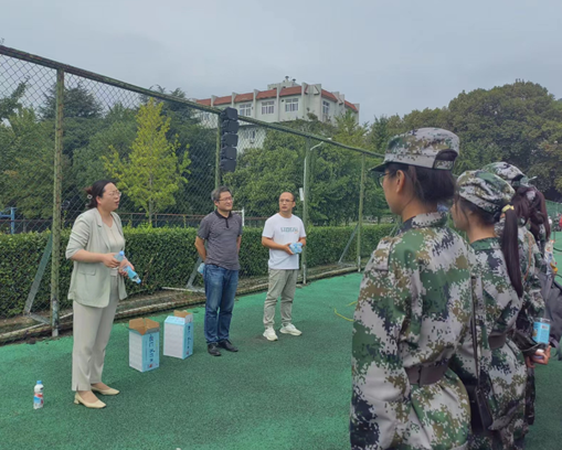 9月26日上午,外国语学院党委书记张蕊,院长余荣琦,党委副书记李磊以及新生辅导员张园园一行,前往军训场地看望慰问正在进行军训的外国语学院2023级学生。