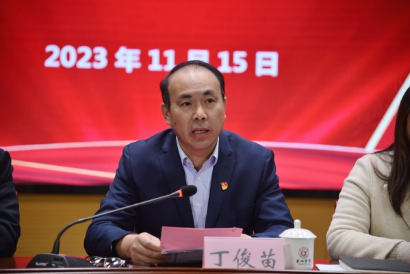 丁俊苗代表学校党委向大会的顺利召开表示热烈祝贺,并对外国语学院新一届“两委”班子提三点要求,一是要抓好政治引领,加强党对学院工作的全面领导;二是坚持立德树人,提高人才培养质量;三是聚焦内涵建设,推动学院高质量发展。